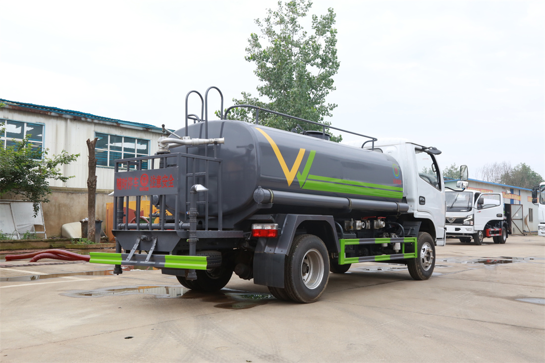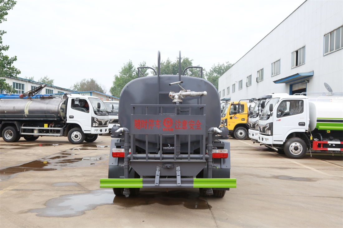 灑水車前裝有鴨形噴嘴或圓頭沖嘴,后面裝有圓柱開灑水噴嘴或蓮蓬頭噴嘴,后部有一工作平臺,裝配有水炮。后部還可裝8個(gè)噴嘴(選裝)。
