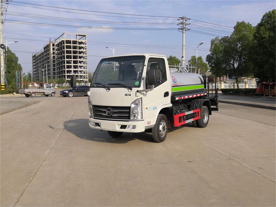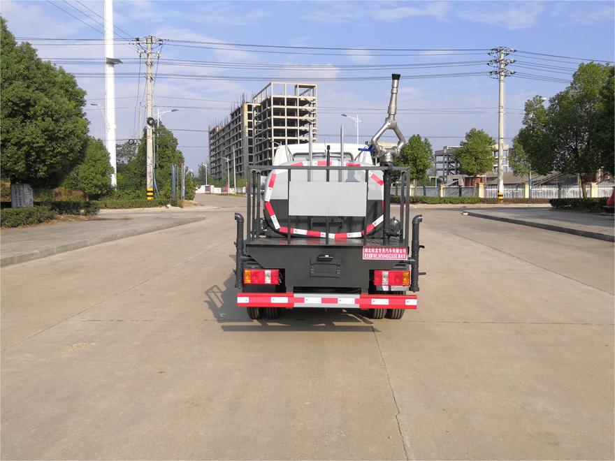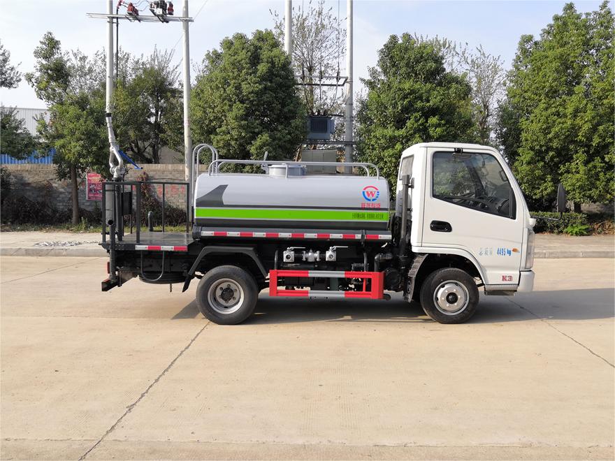 灑水車前裝有鴨形噴嘴或圓頭沖嘴,后面裝有圓柱開灑水噴嘴或蓮蓬頭噴嘴,后部有一工作平臺(tái),裝配有水炮。后部還可裝8個(gè)噴嘴(選裝)。