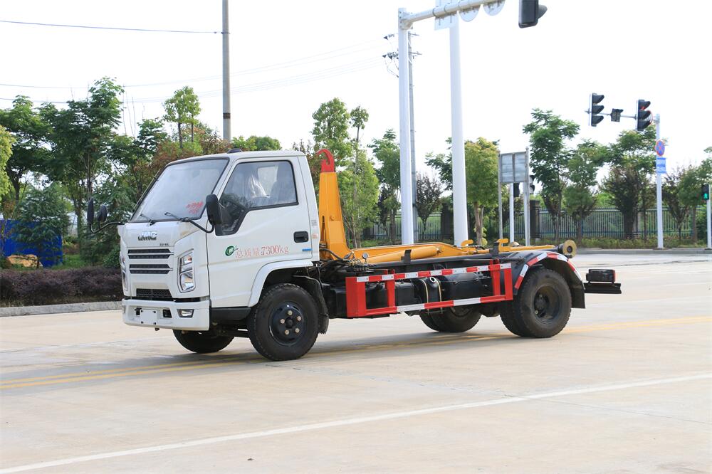 勾臂式垃圾車(車廂可卸式垃圾車)介紹: 車廂可卸式垃圾車又叫拉臂式垃圾車,是一種采用高新設計可伸縮的鉤臂,實現垃圾廂的二次吊裝,自吊上放下,可自行傾倒垃圾的環衛設備。 拉臂式垃圾車結構簡單,操作穩定方便,裝卸效率高,機械化程度高,節省人力。鉤臂垃圾車一車可帶多個垃圾廂,在裝卸的運輸過程中可有效地避免二次污染。 拉臂垃圾車采用高新設計可擺動的鉤臂,垃圾箱由框架、開啟油缸、滑輪、后門和若干加強框架與鋼板焊接而成。調換貨廂快捷方便,貨廂上帶蓋(倒垃圾時可翻開),鉤臂垃圾車垃圾廂體可選用碳鋼、不銹鋼材質、內部采取環氧樹脂防腐處理,改裝部分與原車底盤為可分離式,維修方便且保持了原車的機動性及行駛性能。