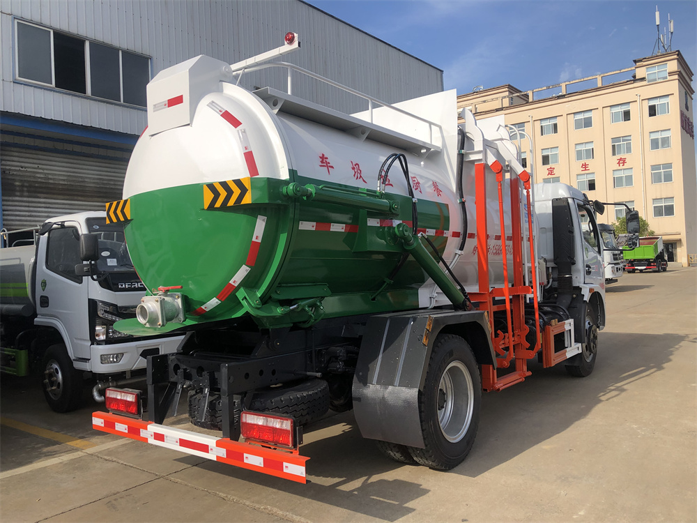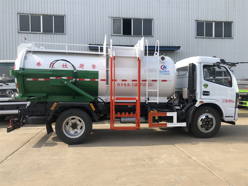 上裝配置:罐體容積8m3,配備120L/240L掛桶提升翻轉(zhuǎn)機(jī)構(gòu),液壓系統(tǒng),后蓋液壓鎖緊開(kāi)啟,罐體可以舉升自卸,尾部帶自流閥;用于運(yùn)輸液態(tài)垃圾,其特點(diǎn)操作簡(jiǎn)單,密封性好,無(wú)泄漏,無(wú)異味;可選裝固液分離功能,推板擠壓功能,常用于餐館的垃圾轉(zhuǎn)運(yùn)處理。