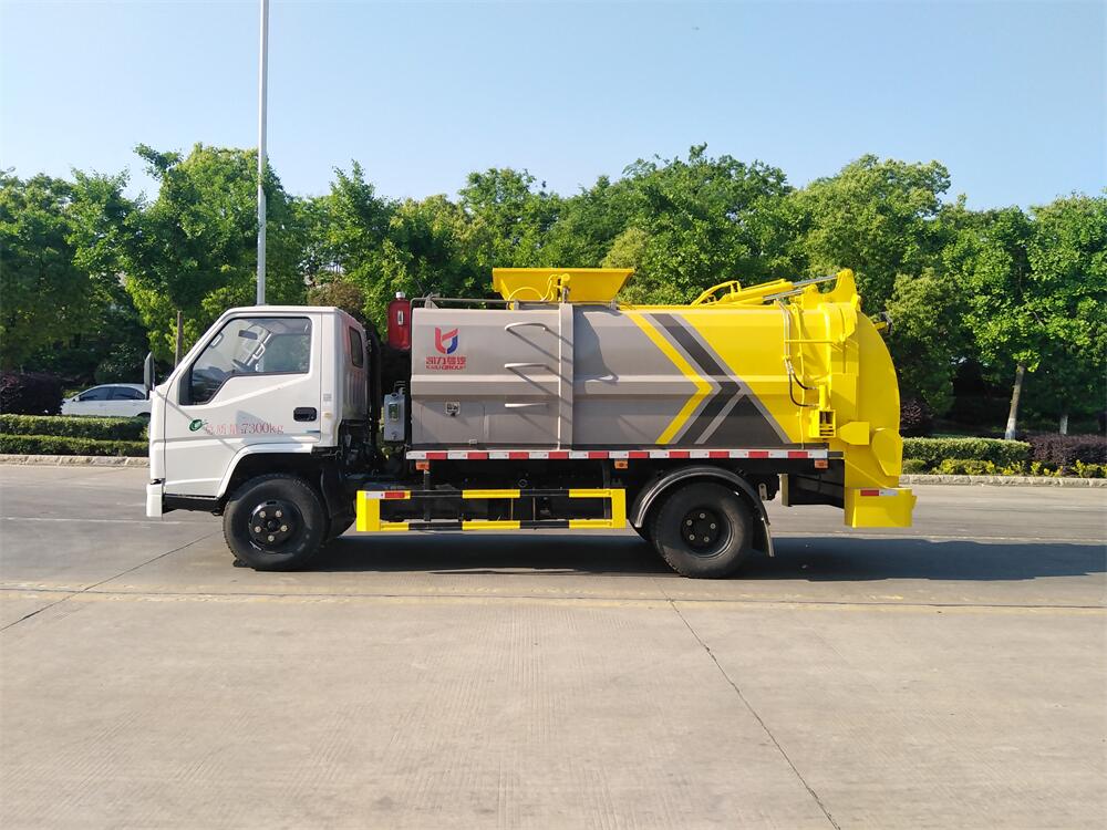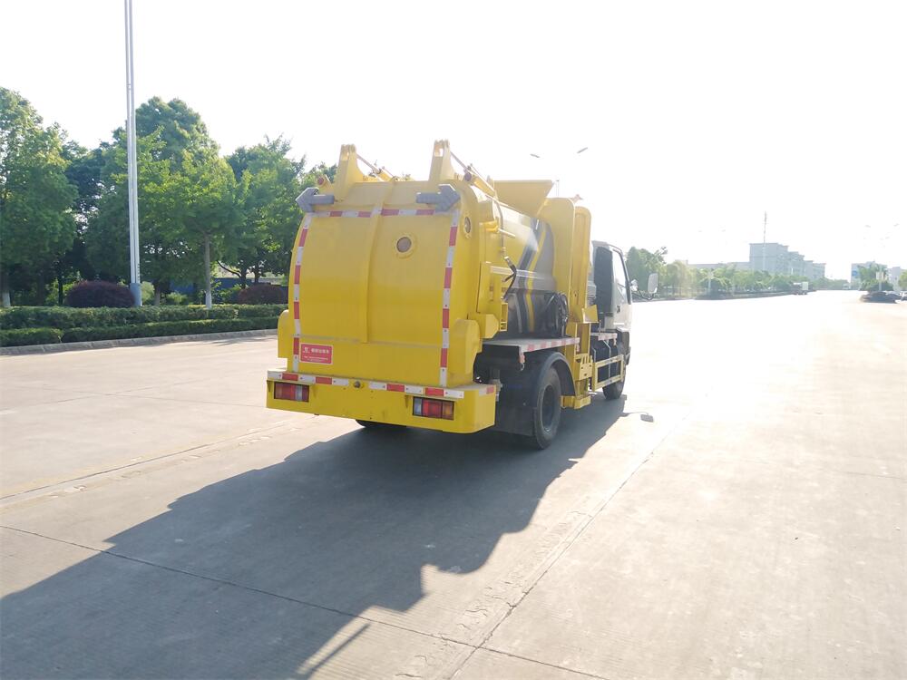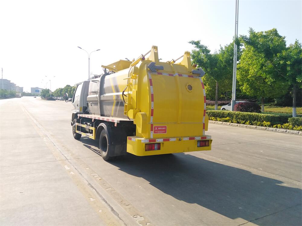 上裝配置:罐體容積6m3,配備120L/240L掛桶提升翻轉機構,液壓系統,后蓋液壓鎖緊開啟,罐體可以舉升自卸,尾部帶自流閥;用于運輸液態垃圾,其特點操作簡單,密封性好,無泄漏,無異味;可選裝固液分離功能,推板擠壓功能,常用于餐館的垃圾轉運處理。