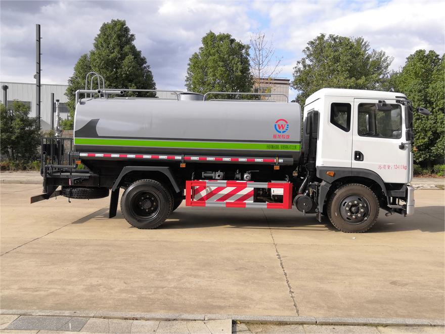灑水車性能特點:前沖(噴)后灑,帶側噴,罐體后帶工作平臺,平臺上安裝綠化灑水炮,灑水炮可360旋轉,可連續調成直沖狀、大雨、小雨、毛毛雨,帶安全護欄,配備全國質量評比**名的杭州威龍大功率專用 灑水泵,泵可自吸自排,安裝過濾網,帶消防接口,可通過消防栓進水,帶自流閥,隨車選裝20米綠化卷盤,可噴灑農藥。