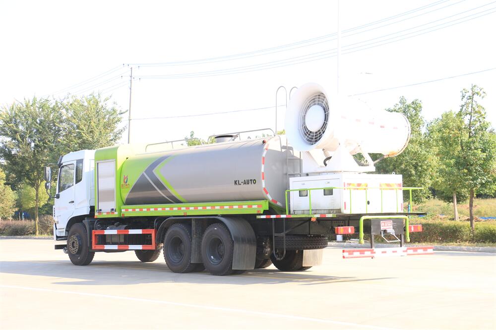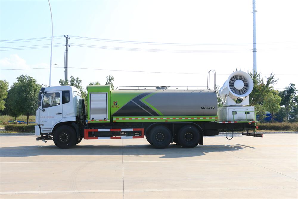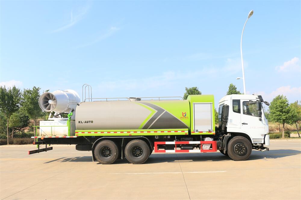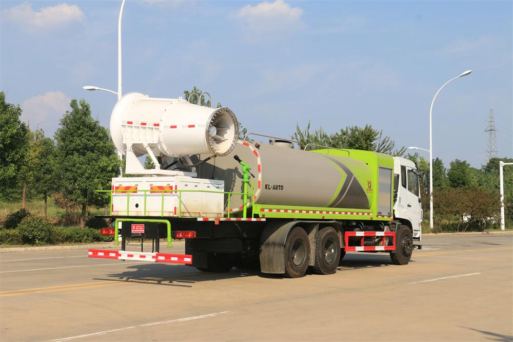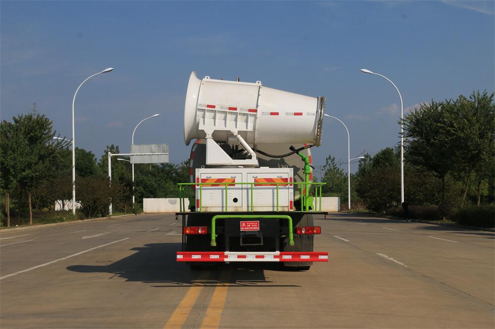 上裝配置:罐體容積為 16立方,選配風(fēng)送式霧炮機(jī)組射程30米、40米、50米、60米、80米、100米、120米霧炮,罐體鋼板為4mm碳鋼Q235材質(zhì),罐內(nèi)隔板具有防波作用,以減輕汽車行駛時(shí)罐體液體沖擊,罐體及整車外形尺寸按照公告。帶大功率專用灑水泵,泵可自吸自排,整車前沖、后灑、側(cè)噴、帶65消防接口,后平臺(tái)配CLW-50、CLW-60、CLW-80、CLW-100、CLW-120型風(fēng)送式霧炮機(jī)組;罐體前封頭配大功率柴油發(fā)電機(jī)組;前封頭帶水位計(jì),后平臺(tái)主管路帶1寸澆花接口,后爬梯。帶兩根輸水管及陰陽端。罐體顏色:銀/灰/綠,罐體兩側(cè)噴“多功能抑塵車”字樣,貼反光標(biāo)示。