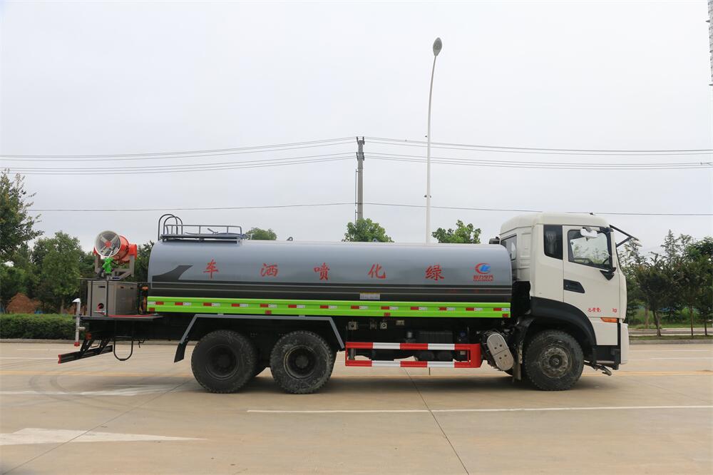 上裝配置:罐體容積 18-20立方,風送式霧炮機組30米,40米選擇,罐體采用國標Q235碳鋼材質,罐體厚度4MM,前后封頭5MM加厚型,罐體內雙層隔板具有防波蕩作用,以減輕汽車行駛時罐內液體沖擊;灑水車整車及外形尺寸嚴格按照**機動車公告制作而成;裝配大功率專用灑水泵,前沖、后灑、側噴、后平臺帶綠化灑水炮,灑水炮可全方位旋轉,可連續調成直沖狀、大雨、小雨、毛毛雨;配消防接口,自流閥,濾網,帶自吸自排功能。前封頭帶水位計,后平臺主管路帶1寸澆花接口,后爬梯,帶1個消防接頭,帶1個自流閥,1個過濾裝置,其余標配。