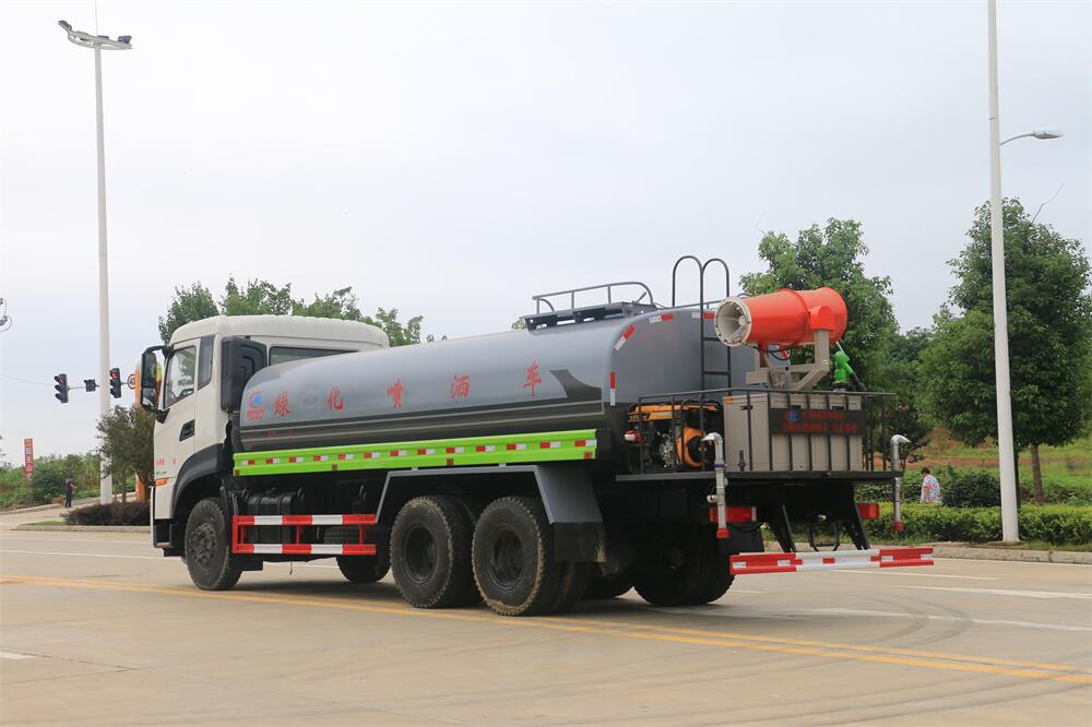 主要由發動機帶動變速箱,變速箱上安裝的取力器帶動灑水泵,灑水泵產生動力,將罐體內部的液體通過管網噴灑出去。工作范圍:自吸高度:≥7m,灑水寬度:≥14m,**大射程:≥28m;可調節成柱狀,射程≥28m;也可調節成霧狀,射程≥5m。
