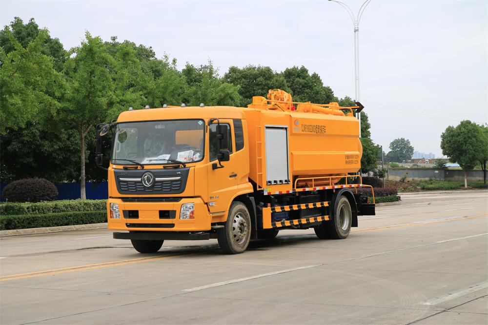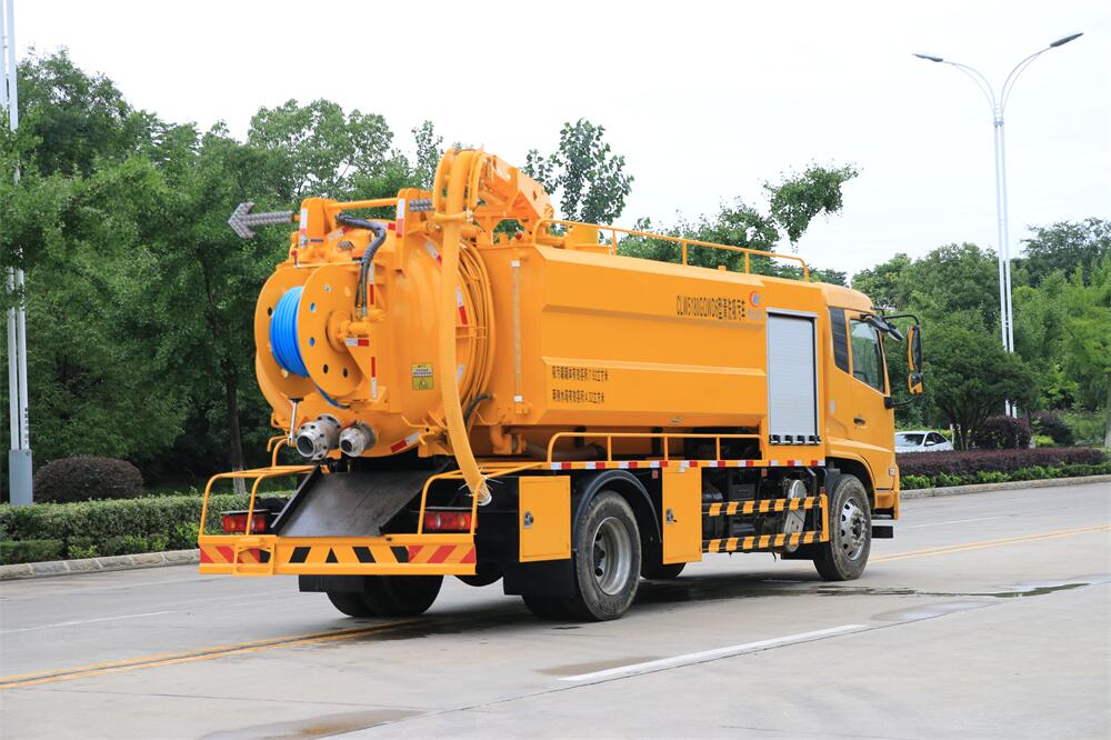 上裝配置:清水罐約 5 立方,污水罐約 10 立 方;罐體 8mm 厚,封頭 8mm 厚,水罐、污罐可 互通,用 100 球閥**開關;清洗部份采用天 津通潔高壓泵,壓力 19Mpa,流量 215L/min, 配 80 米直徑 22 高壓管帶液壓卷盤;吸污部份 采用濰柴375馬力副發動機帶山東SK-30水循 環泵(副發自帶),吸污罐帶舉升,后封頭焊 死(可選擇后封頭全開),尾部加裝一個 600mm 快開,罐體后尾部一個 DN150 排污口球閥,一 個 DN100 吸污球閥帶出口盤,一個視污窗,一 根 10m 吸污管,一套陰陽端,壓力表,防溢 閥,箭頭燈,工具箱,淋管裝置,高壓泵帶氣 吹水。配一個 4.5 公斤水雷噴頭,另帶一個 80 公分手持洗車噴頭。