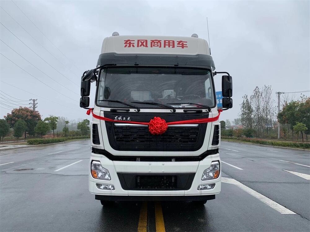 采用東風天龍高頂雙臥底盤,國五排放420/450/465大馬力6缸發動機,法士特12檔變速箱,12R22.5 18PR真空胎,600L鋁合金油箱,免維護后橋,帶ABS防抱死系統。