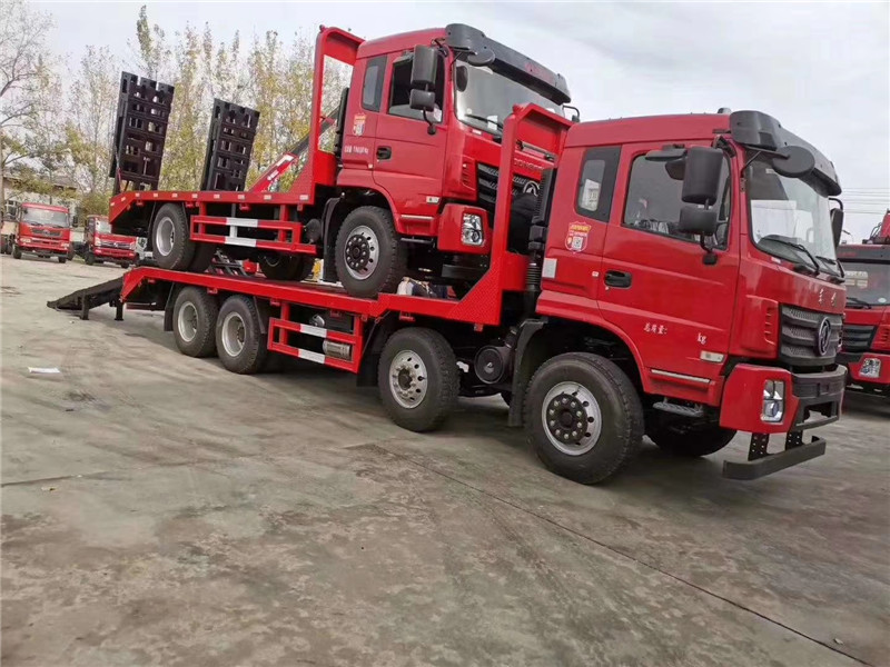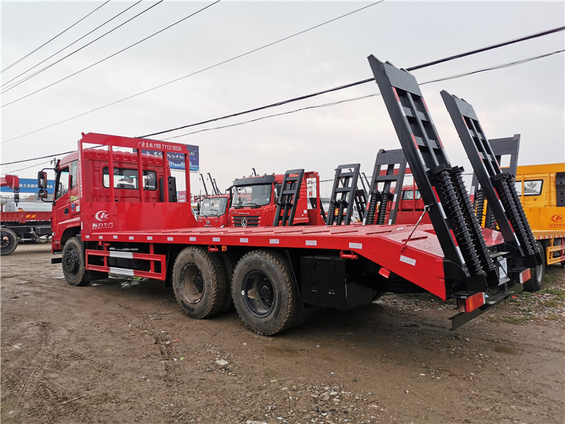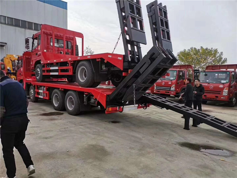上裝采用八毫米花紋鋼板,120套100方管做橫梁,加強(qiáng)雙簧爬梯,可拉25噸以下挖機(jī)。