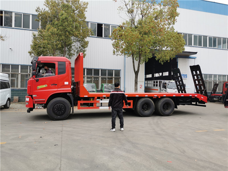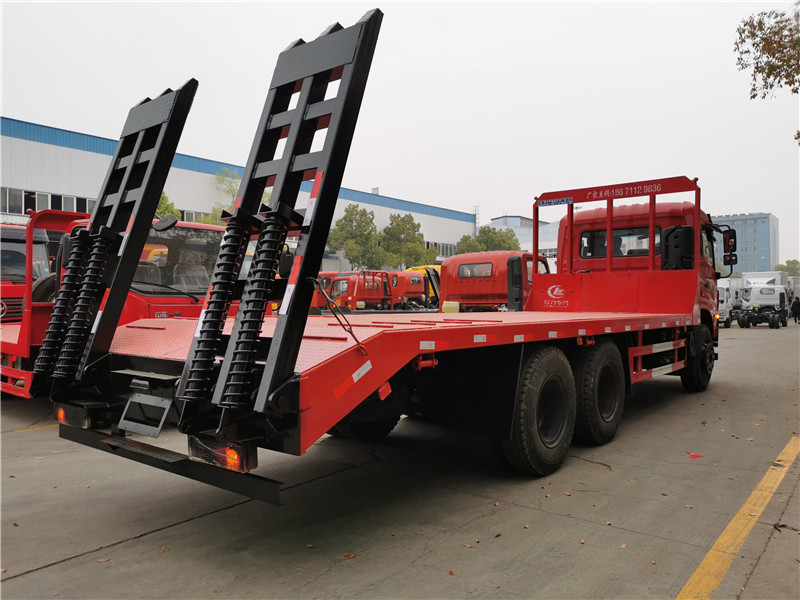 上裝采用八毫米花紋鋼板,120套100方管做橫梁,加強雙簧爬梯,可拉25噸-30噸以下挖機。