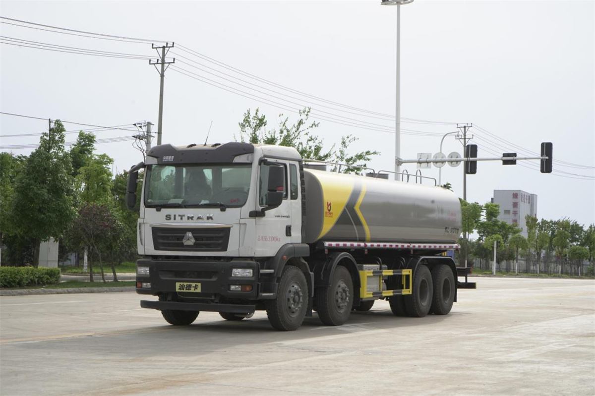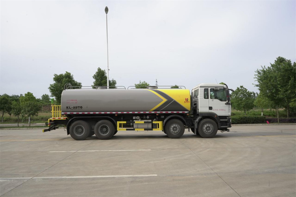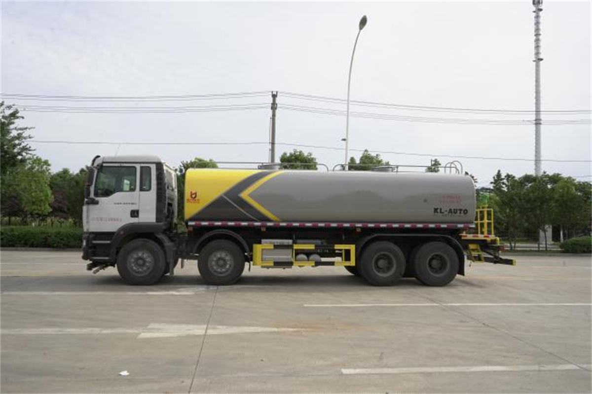 灑水車前裝有鴨形噴嘴或圓頭沖嘴,后面裝有圓柱開灑水噴嘴或蓮蓬頭噴嘴,后部有一工作平臺,裝配有水炮。后部還可裝8個噴嘴(選裝)。