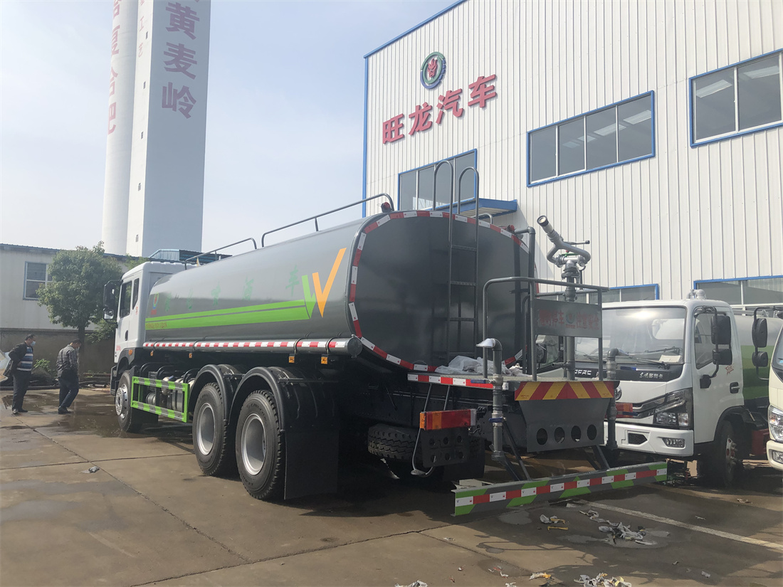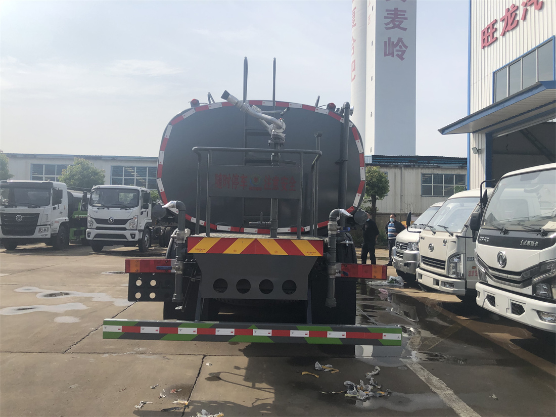 灑水車前裝有鴨形噴嘴或圓頭沖嘴,后面裝有圓柱開灑水噴嘴或蓮蓬頭噴嘴,后部有一工作平臺,裝配有水炮。后部還可裝8個噴嘴(選裝)。